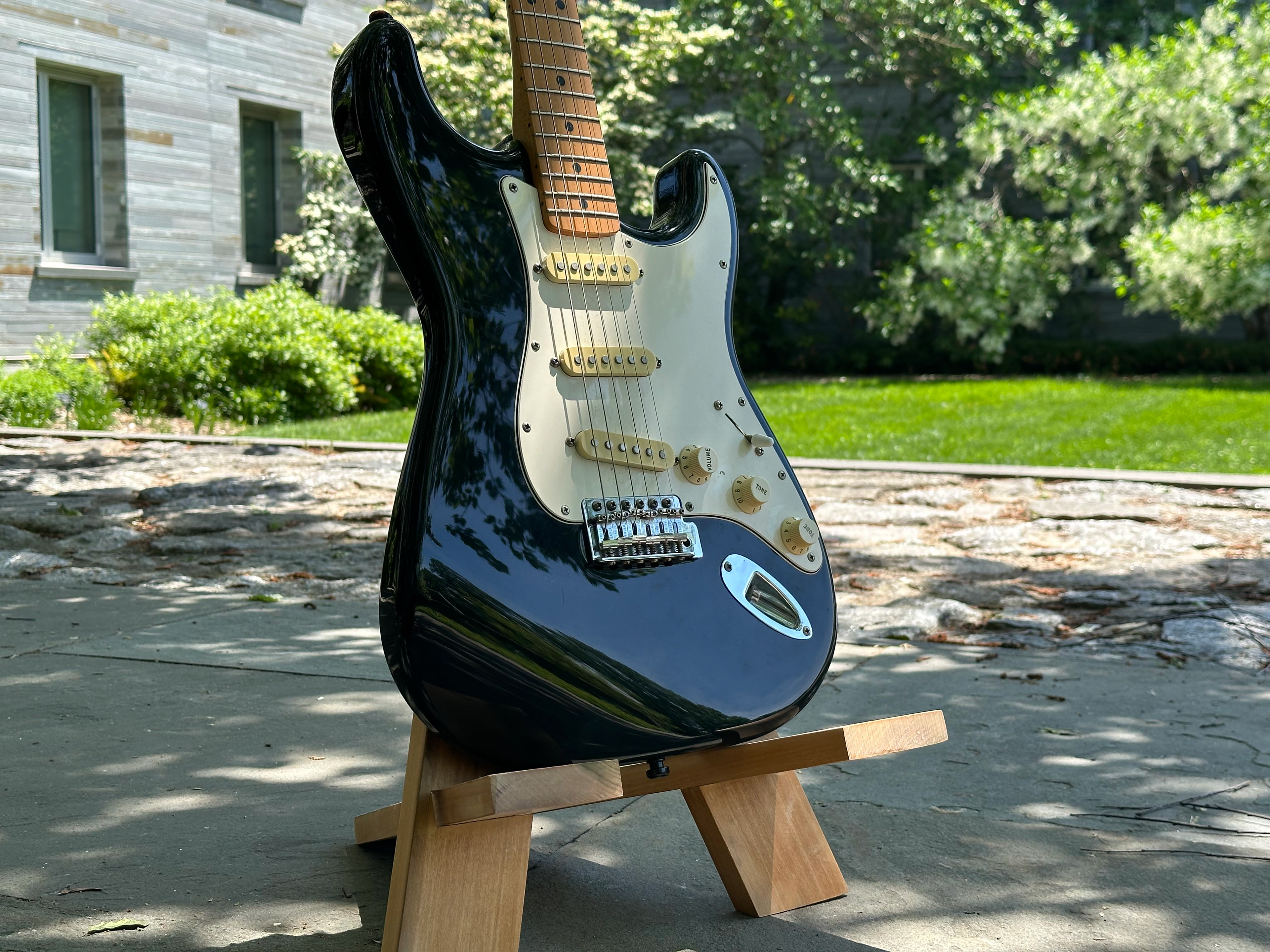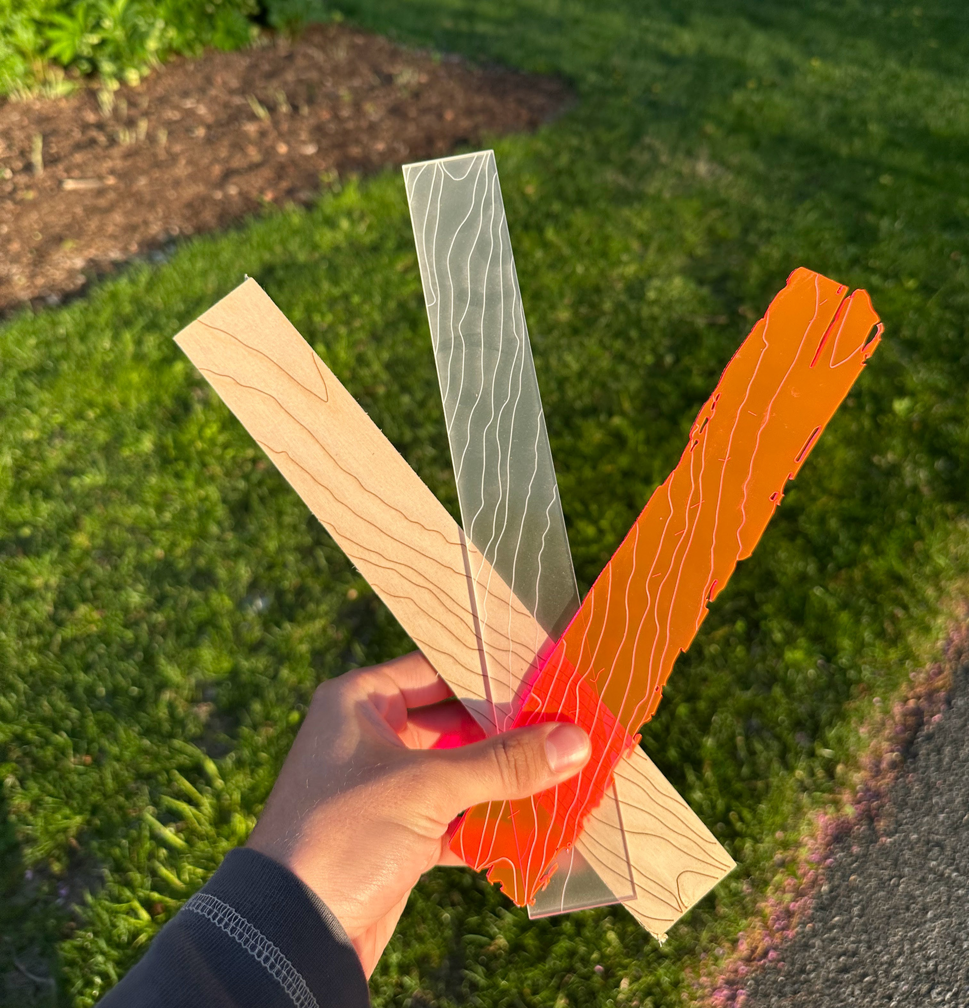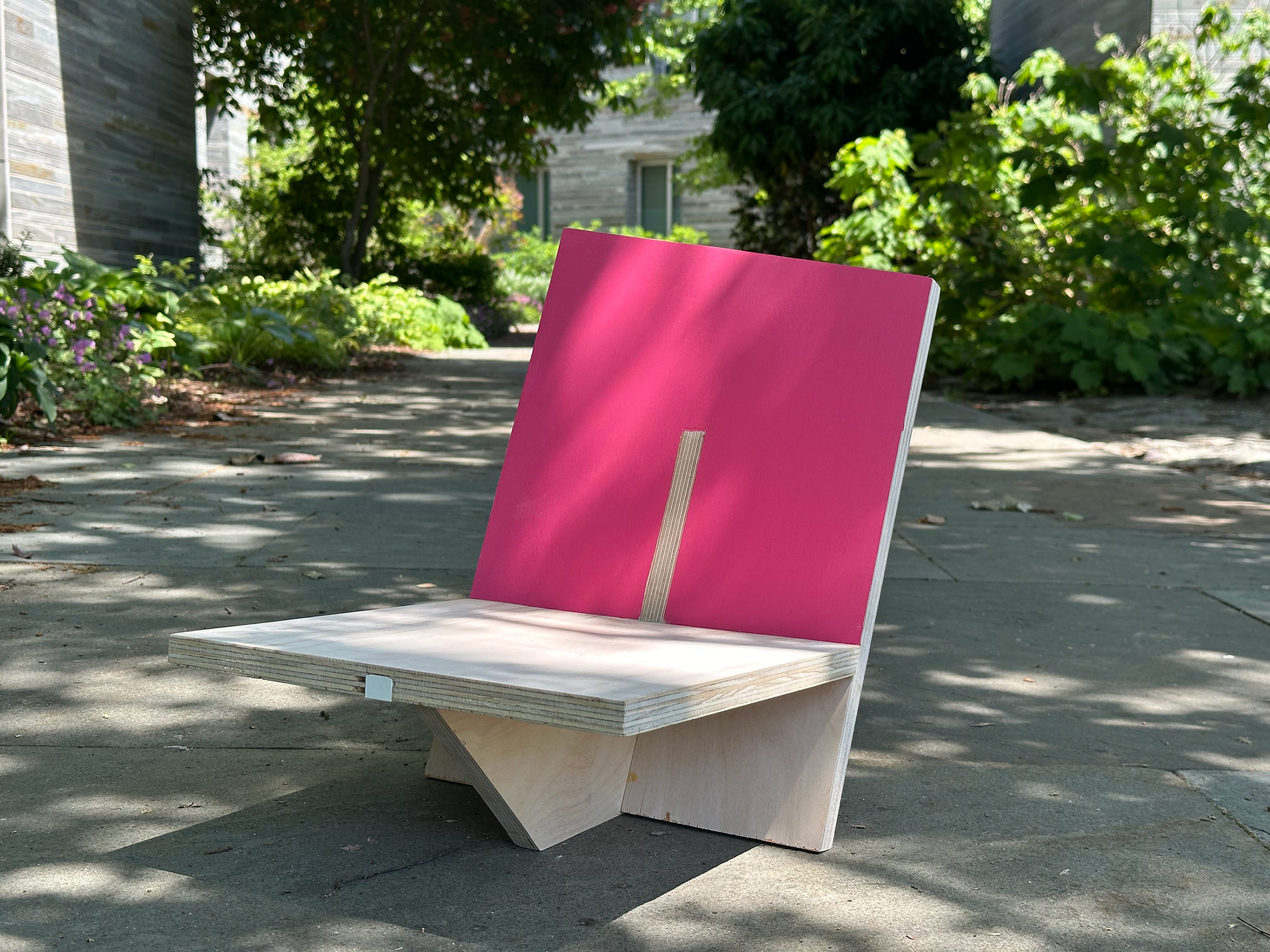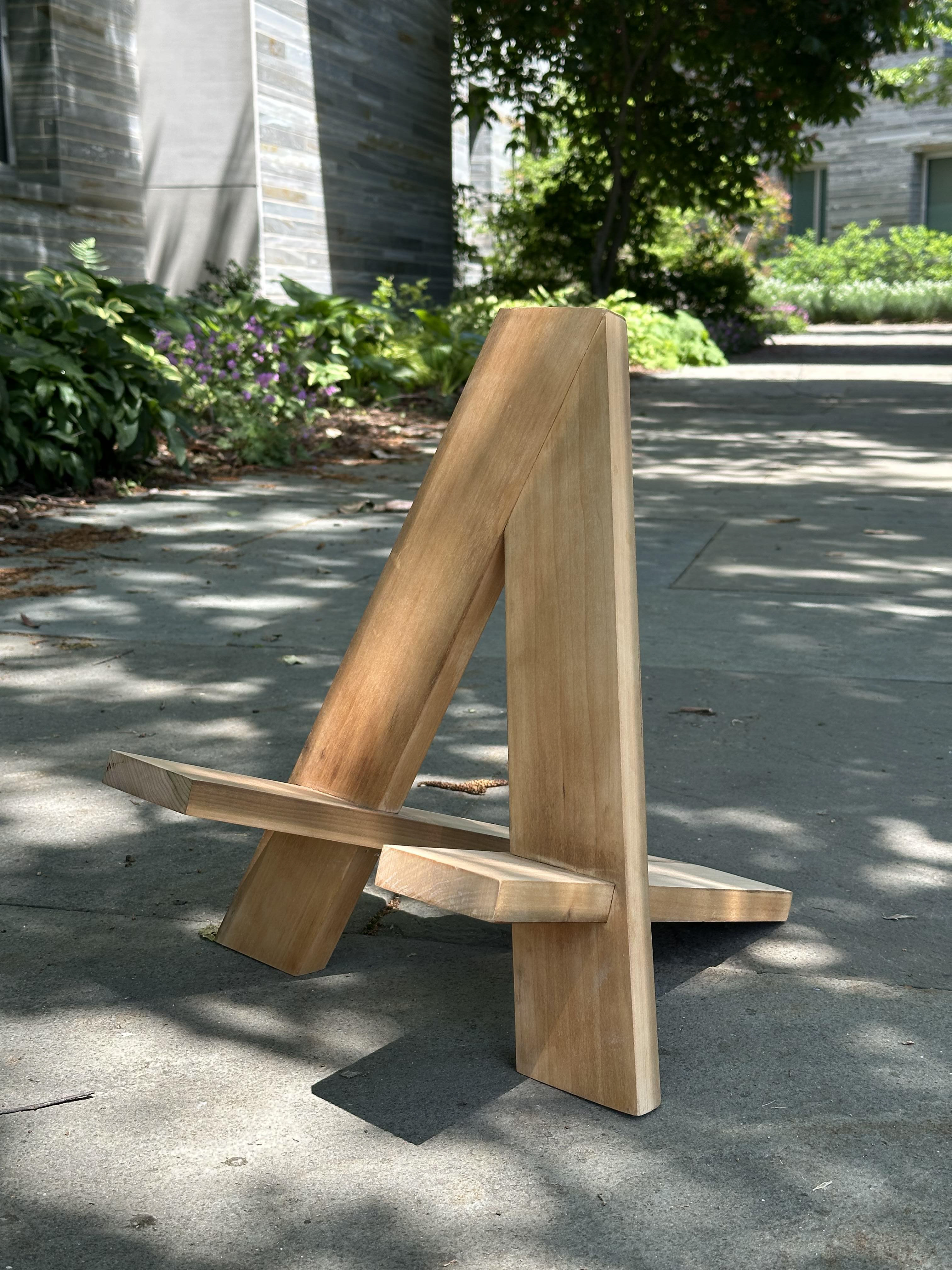 Inspired by the guitar stand, I wanted to make a chair that would loosely belong in a set. I learned that woodworking is so much more powerful when it is a component of a set or there are other things to go along with it. My first version was a draft that was optimized to be made out of one piece of plywood I found in the shop, which resulted in it being very small. The second version was larger, and I used a CNC router to cut the three main pieces, one of which includes a dato slot. Then the angles were cut on the table saw.